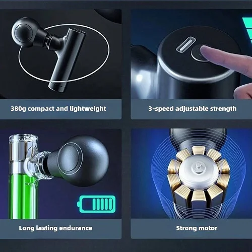 Mini pištolj masažer za leđa i vrat. Može da stane u džep a ima jačinu kao veliki masažer. Ima punjivu bateriju i tri moda rada.