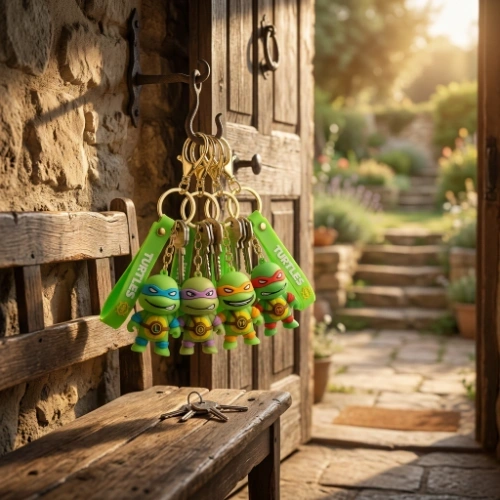Nindža kornjače privesci dolaze u obliku Mikelanđela, spremni da se zakače na ključeve, ranac ili torbu.