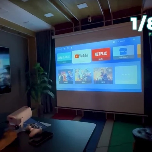 Za rad ove konzole, nije neophodno da imate profesionalno platno ili neku posebnu površinu. Bukvalno može da radi na zidu sobe, neke ravne površine i slika će biti savršena. Projektor ima opciju za podešavanje veličine prikaza. Ukoliko imate manju površinu, ručno u podešavanjima, možete podesiti da dimenzije prikaza budu prilagođene toj površini.