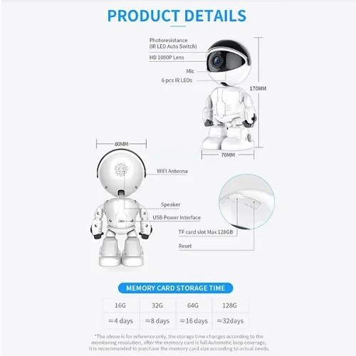 Robot wifi kamera za kuću zahvaljujući svom dizajnu podseća na robot igračku, pa se savršeno uklapa u prostor i ostaje neprimetna. Posetioci objekta neće ni primetiti da kamera snima, što je čini idealnim rešenjem za diskretan nadzor doma, stana ili kancelarije. Pored toga što izgleda moderno, kamera nudi sve funkcije potrebne za bezbedan i praktičan video nadzor.